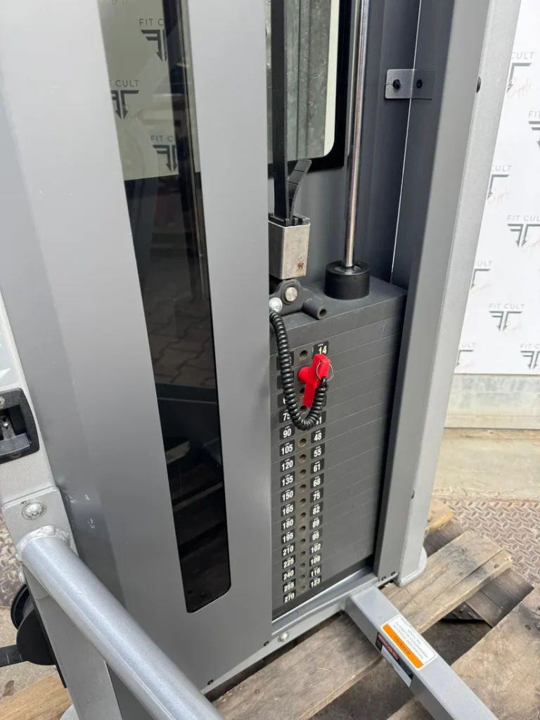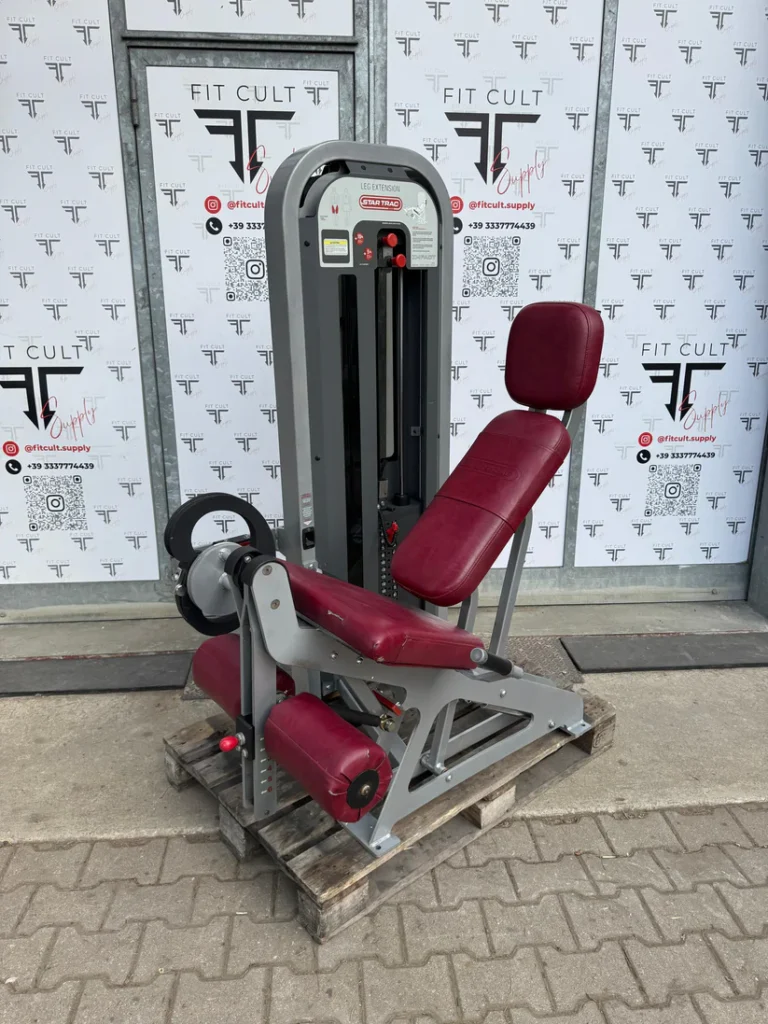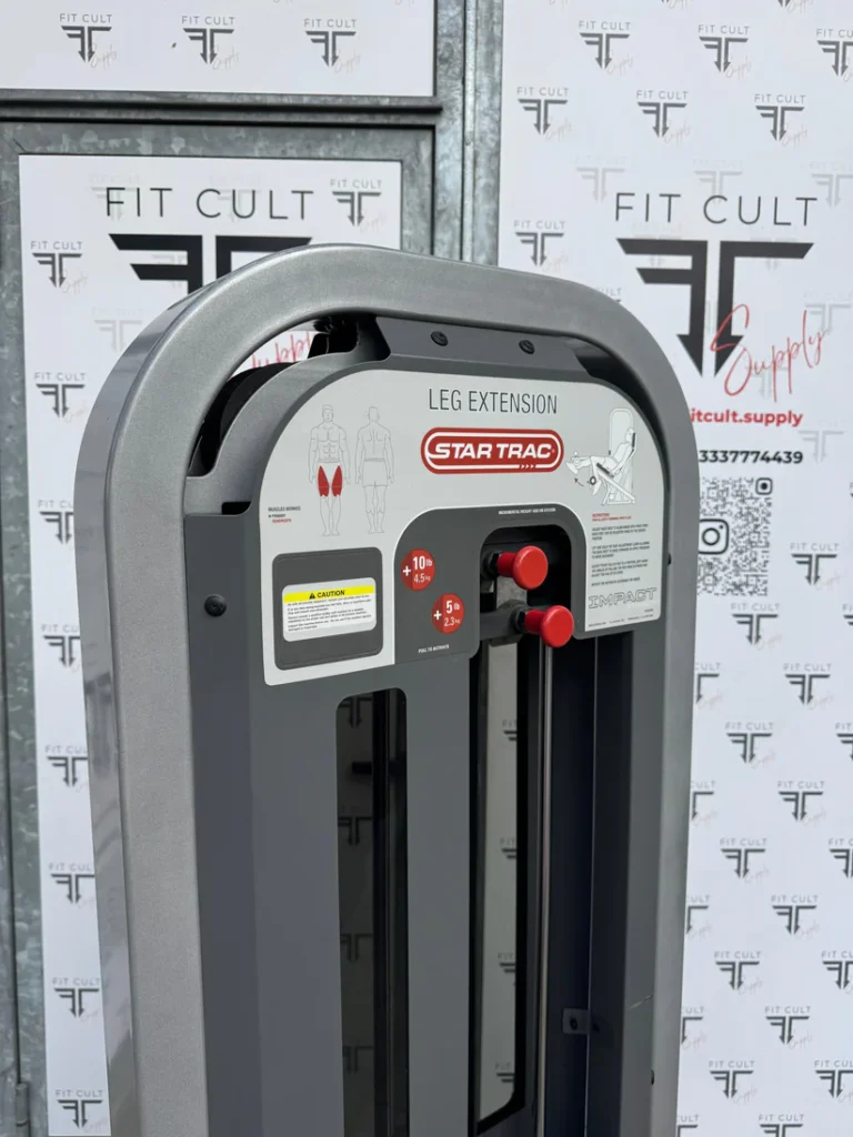The Star Trac Impact Leg Extension is nothing more or less than the Flex Fitness version. Incredible ROM, center driven, kevlar belt, adjustable seat with lever mechanism in working order. Original upholstery and immaculate shape.